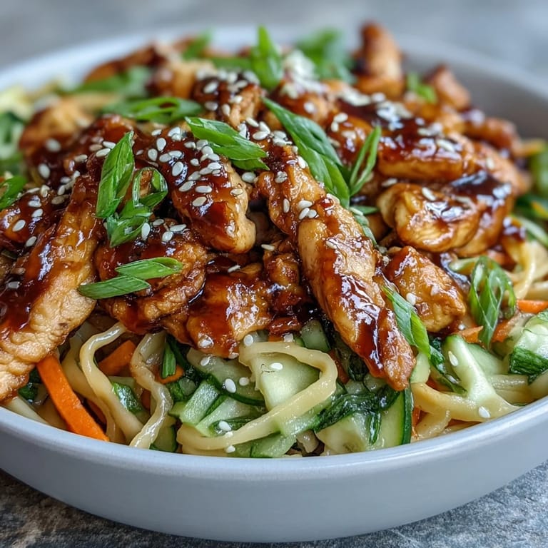 Save to Pinterest There's something almost meditative about standing at my kitchen counter on a Tuesday evening, slicing chicken thin enough to catch the light, knowing that twenty minutes later I'd have a bowl that tastes like every good meal I've eaten in dim sum restaurants and street food stalls across Asia. My friend Sarah brought home this exact combination from a trip to Bangkok, and while her description was vague—something about noodles and a sauce that changed everything—I became obsessed with recreating it. What started as a casual weeknight dinner has somehow become the recipe I make when I want to feel like I'm traveling without leaving home.