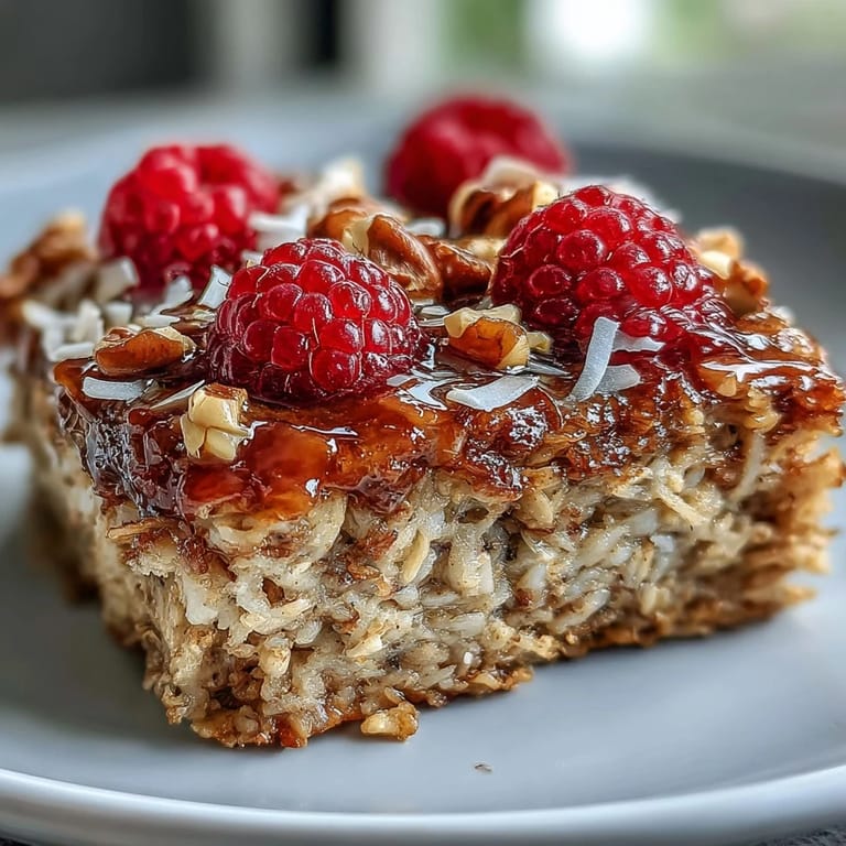 Save to Pinterest The smell of toasted coconut still reminds me of the first Sunday I tried baking breakfast instead of frying it. I was tired of standing over the stove, flipping pancakes one by one while everyone else sat waiting. This oatmeal bake changed everything. I could slide it into the oven, pour myself coffee, and actually sit down with my family while it turned golden and bubbly.