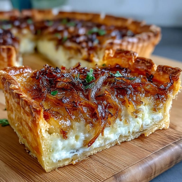 Save to Pinterest There's a particular magic to watching onions transform in a hot pan—from sharp and biting to something almost honeyed and complex. I discovered this tart on a lazy Sunday afternoon when a friend arrived unannounced with a bottle of wine and I had almost nothing in the kitchen except butter, onions, and a thawed sheet of puff pastry shoved in the freezer. What emerged from the oven forty minutes later was so golden and fragrant that she stayed for hours, and we polished off nearly the entire thing. Now it's become my go-to when I want to feel sophisticated without spending all day cooking.