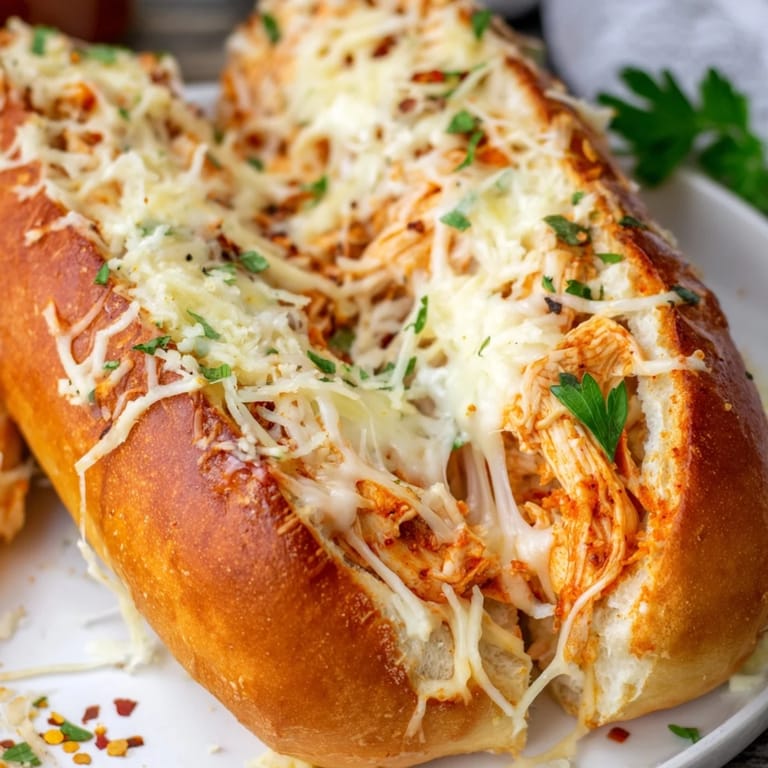 Save to Pinterest The first time I made chicken parm stuffed garlic bread was actually an accident. I had leftover garlic bread from a dinner party and some chicken parmesan filling from making meatballs earlier that week. My husband walked into the kitchen, saw me shoving the chicken mixture into hollowed bread, and said "that's either going to be amazing or a disaster."
