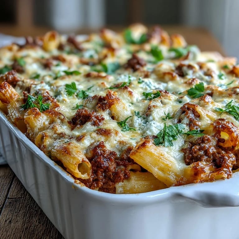 Save to Pinterest My neighbor knocked on my door one Thursday night holding an empty casserole dish and asked if I had anything cheesy and filling she could borrow for her kids. I had ground beef thawing, a tub of cottage cheese I'd bought on autopilot, and leftover penne in the pantry. What I threw together that evening became the dish I now make every other week. The smell of bubbling mozzarella and oregano drifting through my apartment still reminds me of her grateful smile.