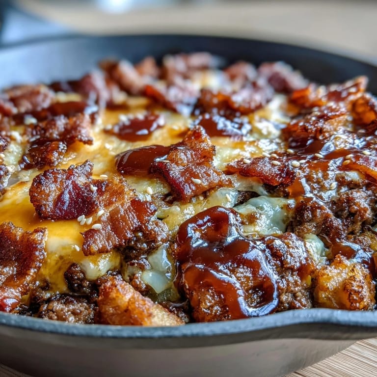 Save to Pinterest My kitchen smelled like a backyard barbecue the moment that bacon hit the skillet on a random Tuesday night, and I realized I didn't need to fire up the grill to feel that satisfaction. I was experimenting with ways to eat like I was cheating on my diet without actually cheating, and this skillet just sort of happened—all the mess and joy of a loaded cheeseburger, none of the bread guilt. The sizzle of bacon fat becoming the foundation for everything else felt like the kind of kitchen shortcut that actually tastes better than the complicated version.