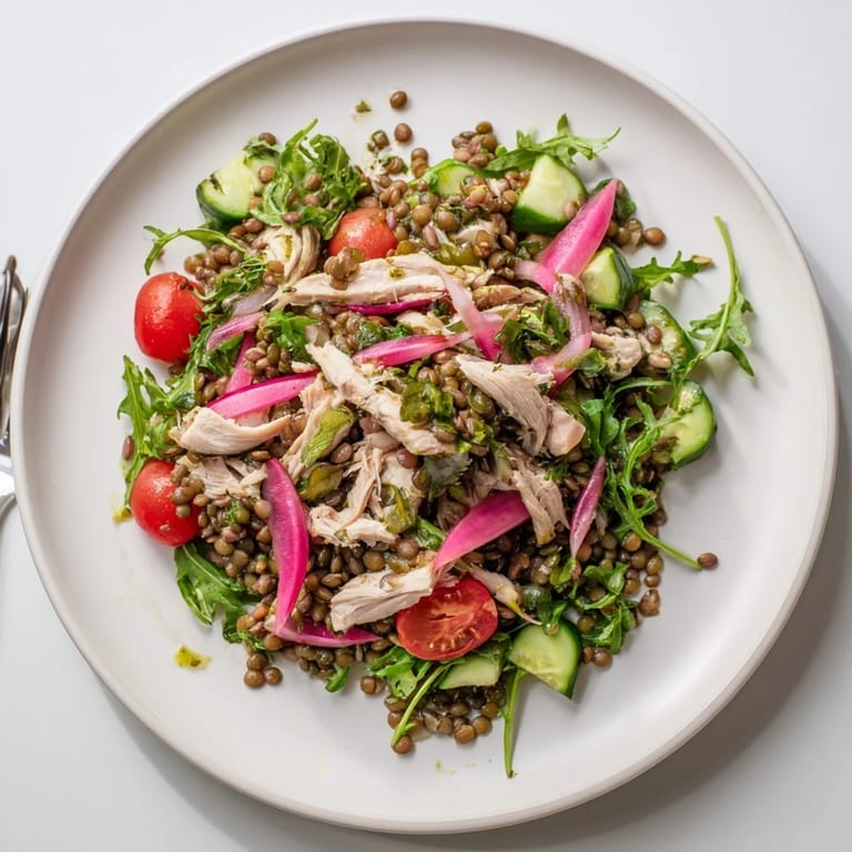 Save to Pinterest This salad has become my go-to for those nights when I want dinner to feel special but I do not want to actually cook anything. There is something about the combination of warm lentils and cold chicken that feels sophisticated without being fussy, like I am eating at a tiny bistro instead of my own kitchen counter.