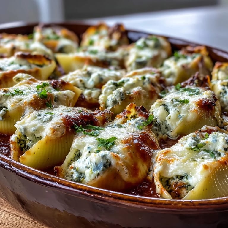 Save to Pinterest My sister texted me one random Tuesday asking if I could bring dinner to her place, and I found myself standing in the kitchen thinking about what would feel special but not overly complicated. That's when these pesto lasagna stuffed shells came to mind, though honestly I'd never made them before. Something about the combination of creamy ricotta, bright pesto, and tender pasta felt like it could bridge the gap between elegant and genuinely comforting, the kind of dish that makes people's eyes light up when they taste it.