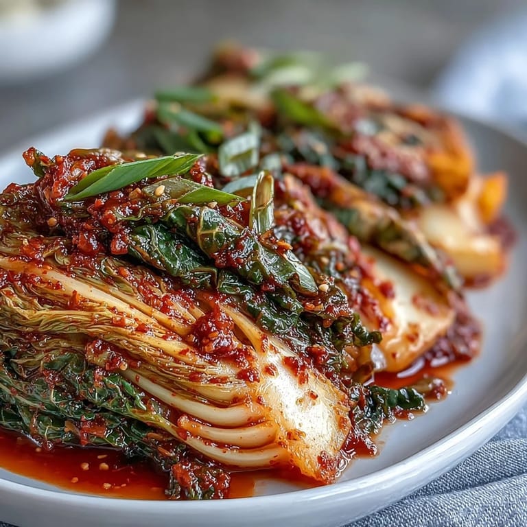 Save to Pinterest My first batch of kimchi happened by accident, really. I'd bought a massive napa cabbage at the Korean market without a real plan, and a friend casually mentioned that fermentation was easier than I thought. Three days later, my kitchen smelled like a vibrant blend of garlic, ginger, and something alive and transforming. That tangy crunch changed how I thought about cooking—suddenly a side dish became the star of the table.